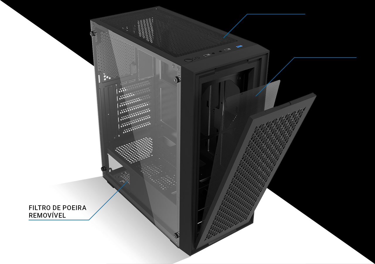 Filtros de poeira: Frontal, Superior e inferior removíveis