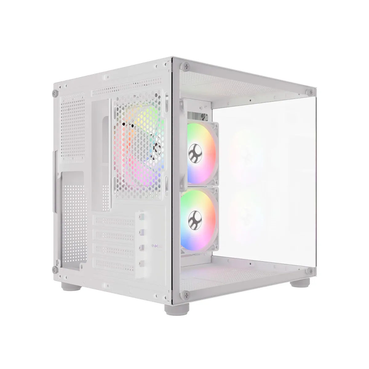Com vidro temperado frontal e lateral, o modelo permite exibir seus componentes com clareza, mantendo um layout compacto e moderno. Compatível com placas-mãe mATX e mini-ITX, suporta placas de vídeo de até 310mm e coolers de CPU com até 155mm de altura.