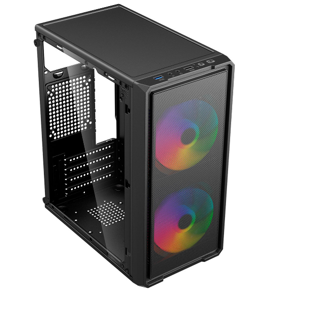 O Gabinete Gamer BG-065 ZONE traz um design compacto com frente em Metal Mesh, já acompanhado de 2 fans Rainbow de 120mm pré-instalados no painel frontal, garantindo ventilação inicial sem necessidade de upgrades imediatos.