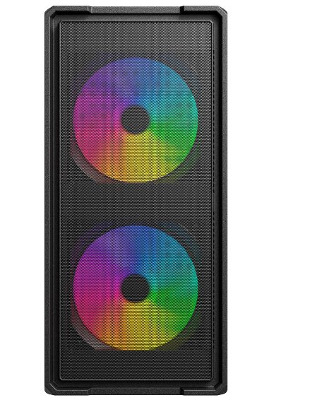 Já vem com 2 fans Rainbow 120mm pré-instalados no frontal