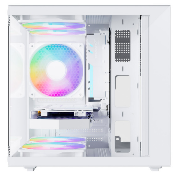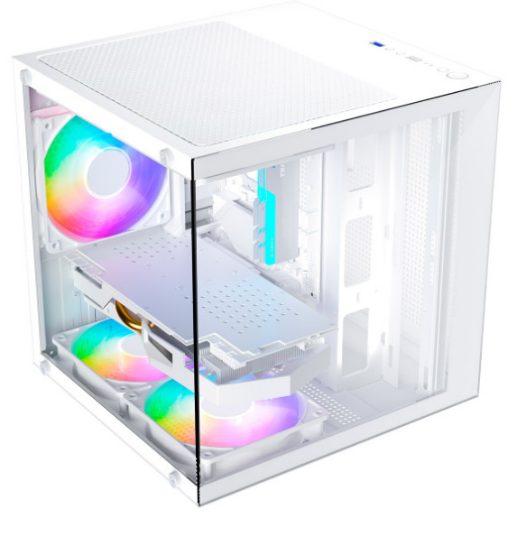 Assim como o modelo padrão, mantém o design dual chamber, frontal e lateral em vidro temperado, estrutura em SPCC 0,45mm, suporte para GPUs de até 260mm e coolers de até 165mm.