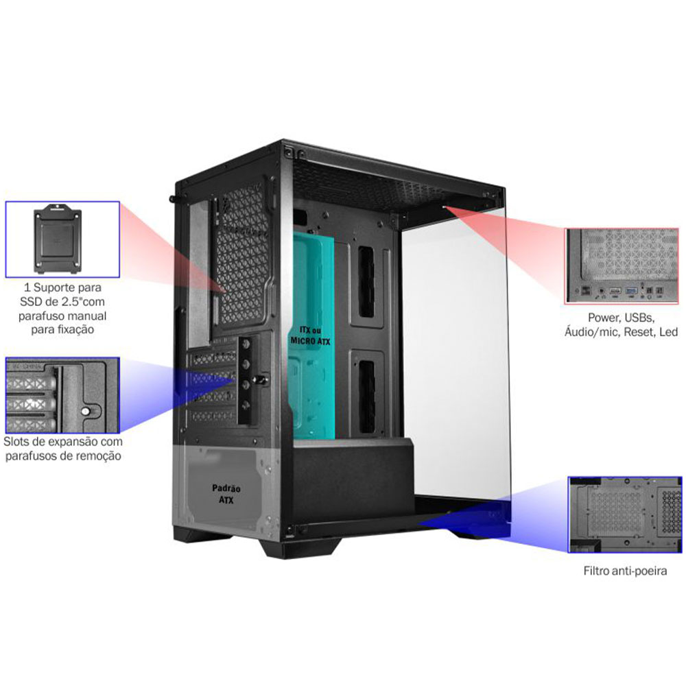 Gabinete gamer k-mex aquario microposeidon 12h5 sem fan aquario