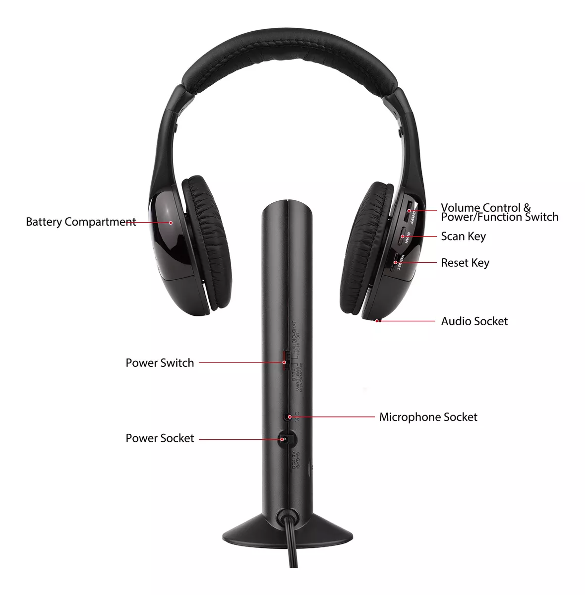 fone de ouvido sem fio: recepção sem fio de qualquer dispositivo elétrico com saída de áudio, como som de TV de canal completo, PC, player de jogos, leitor de CD/DVD/VCD, dispositivo de áudio , e MP3 player, não se preocupe mais em perturbar os outros. Bate-papo de