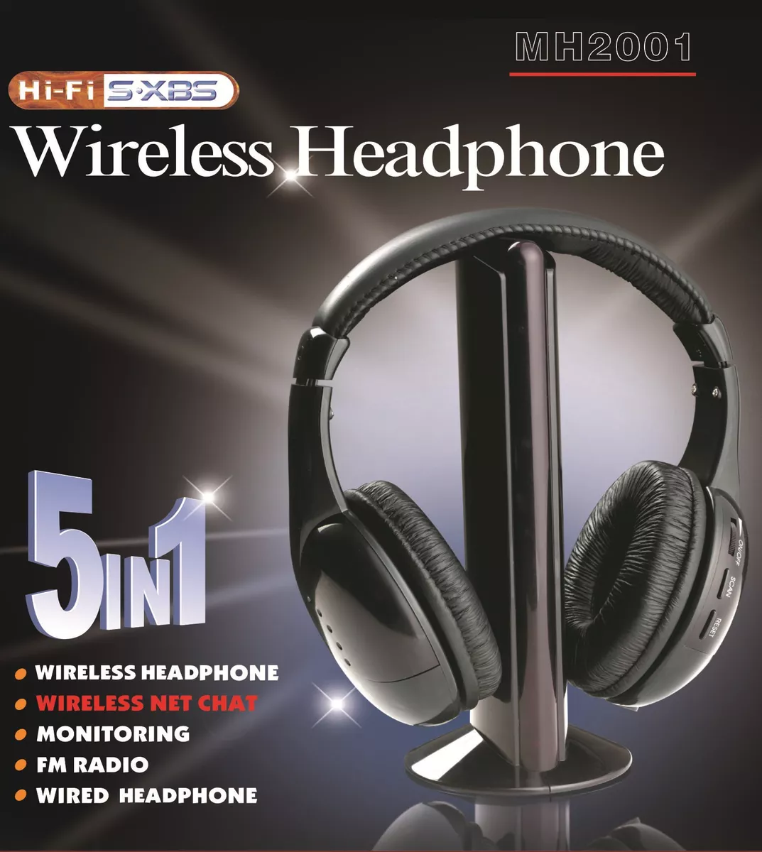 ouvido 5 em 1: com funções de fone de ouvido sem fio, bate-papo de áudio sem fio, monitoramento sem fio, rádio FM e fone de ouvido com fio.