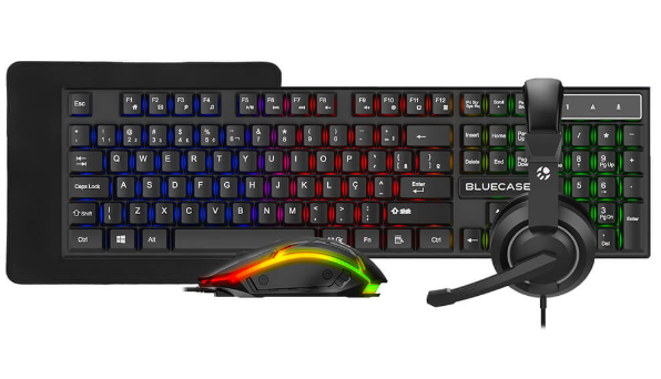 Com o incrível Kit Gamer Play Bluecase®, você terá todos os equipamentos essenciais para brilhar no campo de batalha virtual. Este conjunto completo inclui um teclado, mouse, mousepad e headset de alta qualidade, projetados para elevar sua experiência de jogo.