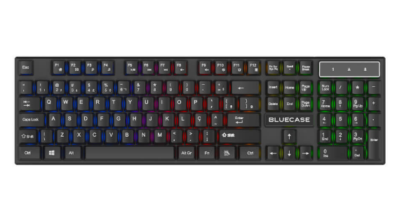 O teclado, com o layout ABNT2, oferece teclas em português e 12 funções multimídias acessíveis através da prática tecla de atalho FN, facilitando o controle durante suas partidas.
