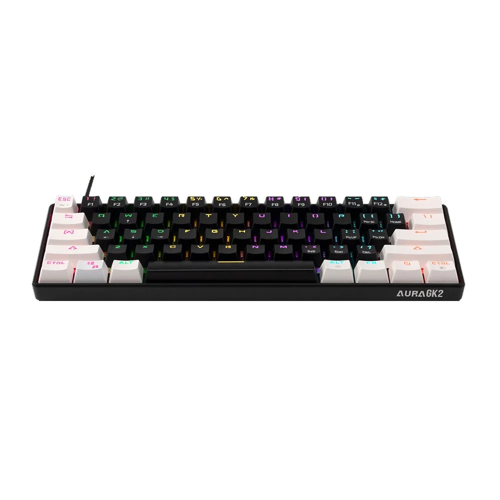 Pequeno e moderno o teclado compacto de 61 teclas vem em capas de teclas de duas cores disponíveis em layouts preto-branco ou branco-preto. Para portabilidade máxima, ele também vem com um cabo usb type-c para a incluído.