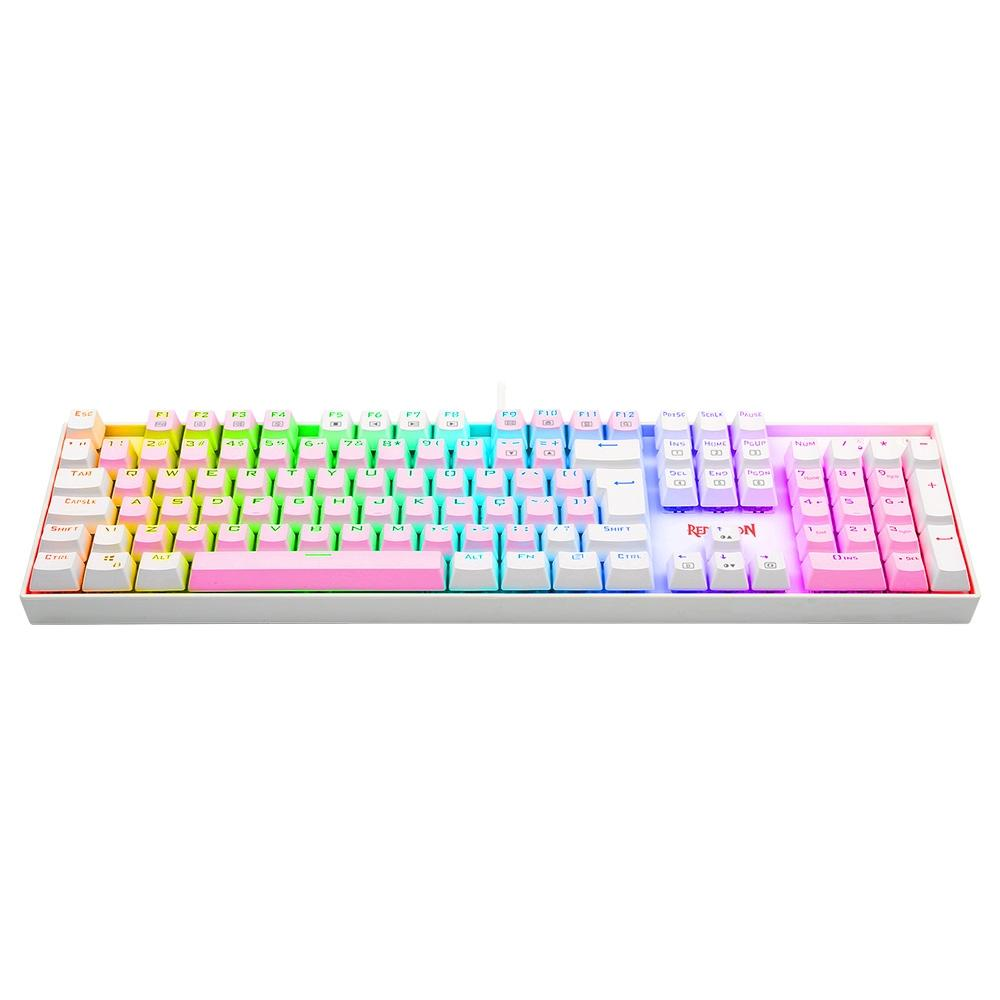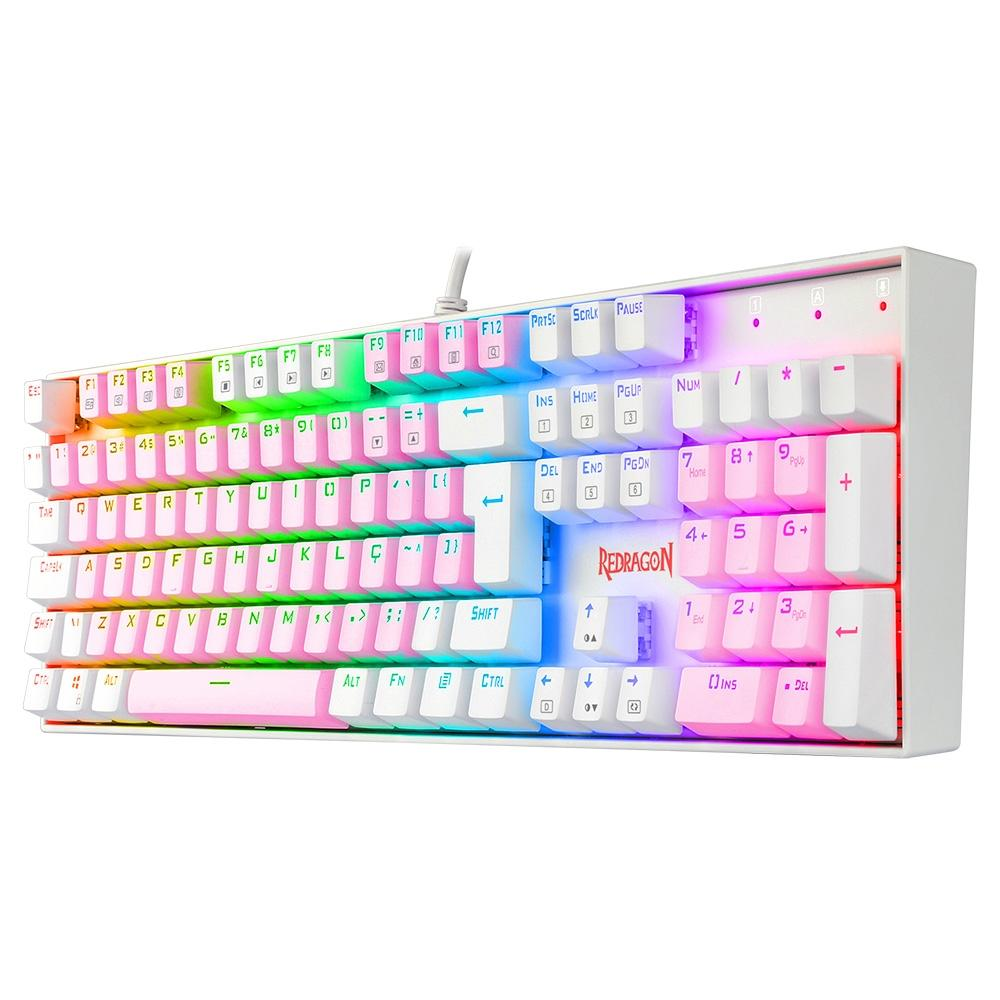 Teclado Mecânico Gamer Redragon Mitra, RGB, Switch Blue, ABNT 2, Rosa e Branco