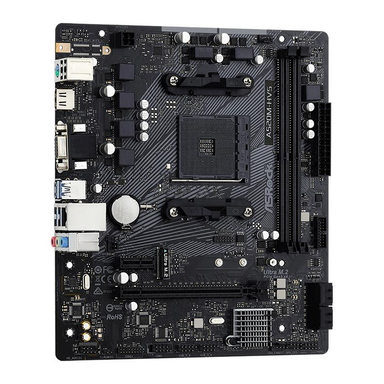 A A520M-HVS suporta processadores AMD AM4 Ryzen™ 3000, 4000 G-Series, 5000 e 5000 G-Series*, memórias de até DDR4 4733+ (OC), e duas conexões PCIe lhe proporcionando todas as funcionalidades para um setup imponente.
