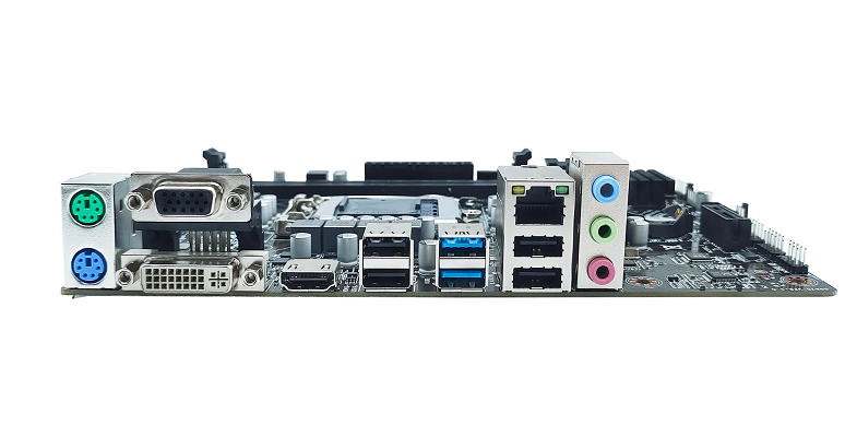 Suporta Até 32GB Dual channel DDR4 Texto Capacitores sólidos A placa-mãe Bluecase BMBH510-G3HGU-M2 conta com 100% dos capacitores sólidos, que entregam uma durabilidade e estabilidade maior a placa-mãe. Traseira