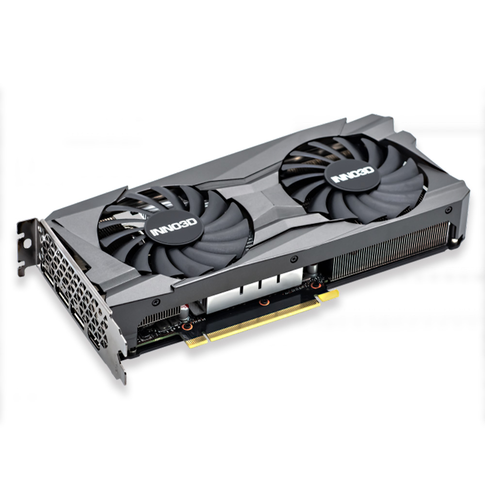 A INNO3D GeForce RTX 3060 Twin X2 é refrigerada com dois fans de 9 cm para manter a temperatura em níveis ótimos durante as sessões de jogos dos usuários.