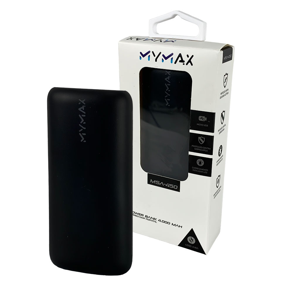 Power Bank 4000mAh Carregador Portátil Preto com LED Indicador