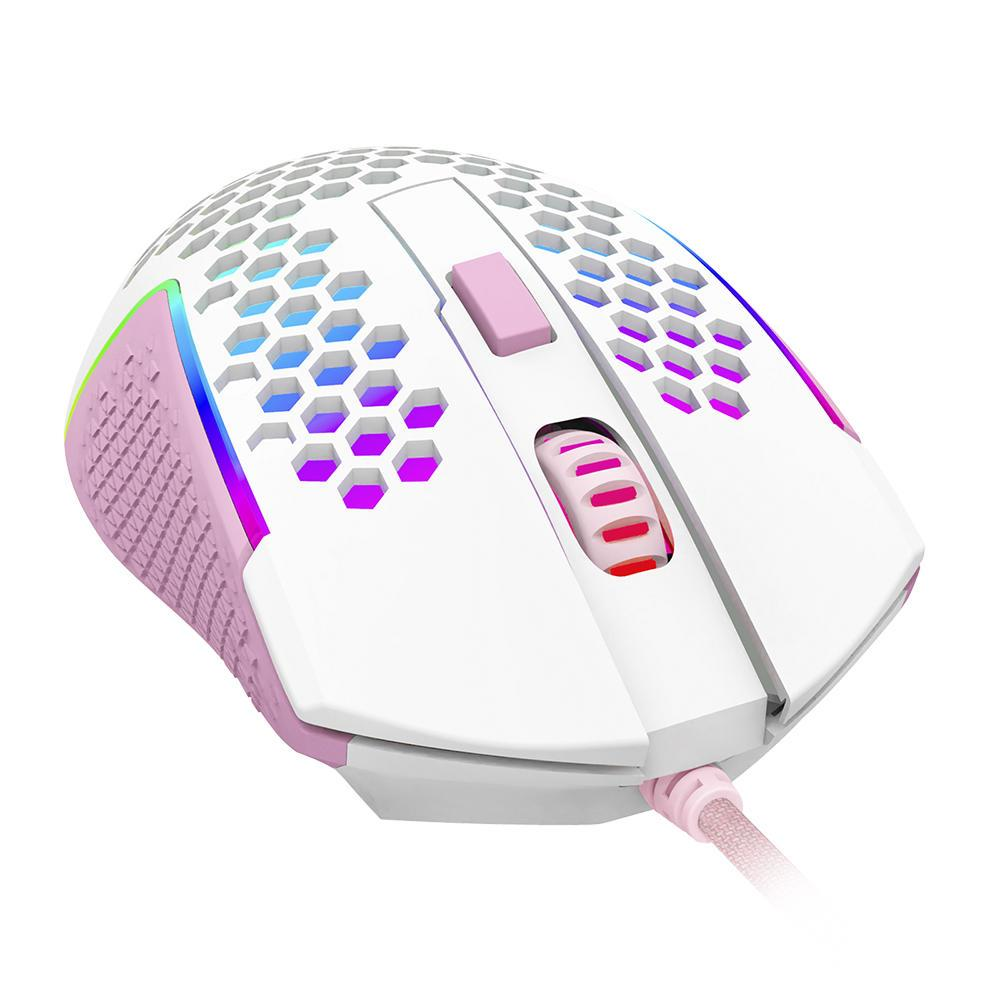 Mouse gamer redragon reaping elite rgb 6 botões programáveis 32000 dpi branco com rosa - m987wp-p