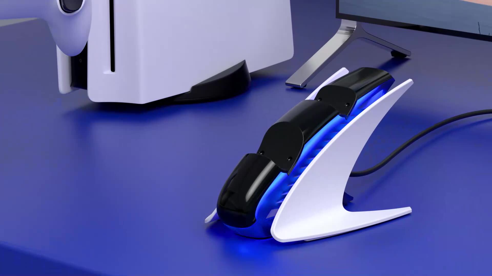 A nova estação de carregador do controlador ps5 é elegante e mantém o mesmo estilo que o console ps5, que combina com o tema do ps5 e parece agradável ao lado do console ps5. Quando você soltar controladores nos slots de carregamento ps5, ele vai brilhar azul para que você saiba que está carregando, as mesmas luzes coloridas que o console ps5, parece, um must-have para qualquer ps5 gamer